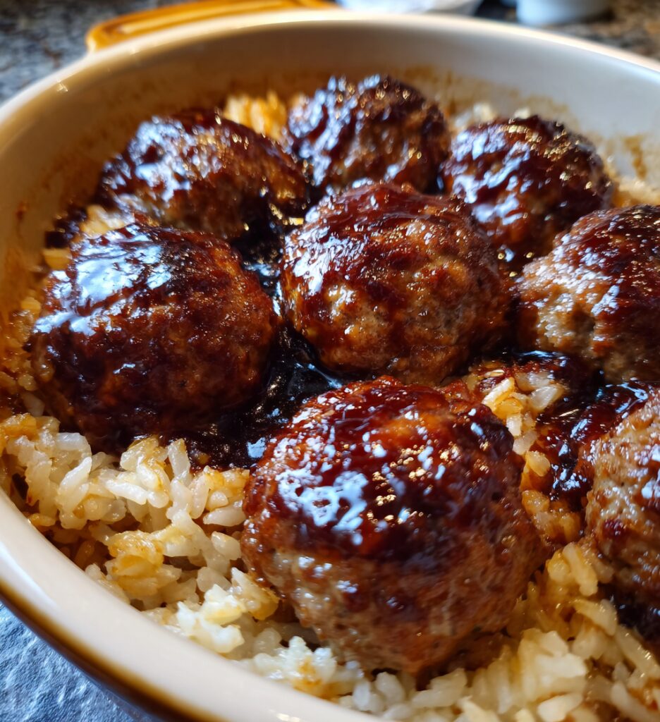 Honey Garlic Meatball Rice Bake: 1 Pan Divine Dinner